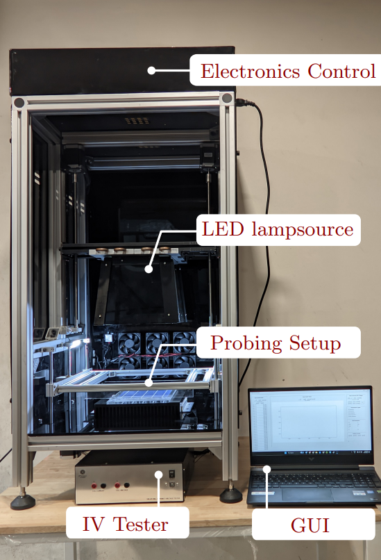 A low-cost capacitor-based solar panel IV curve tester with integrated spectrum and temperature sensors, paired with a software platform for accurate performance evaluation and data analysis.