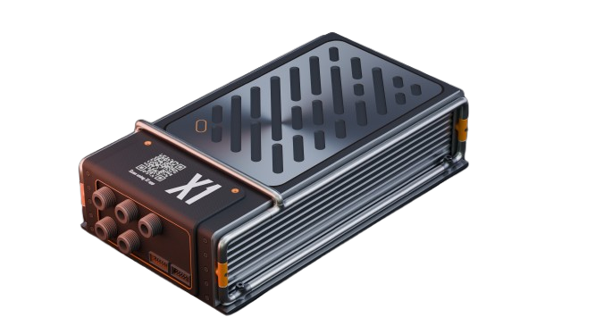 X1 is a smart motor controller with combined functionalities of a VCU. It has various software-defined features and firmware upgradable via OTA updates.